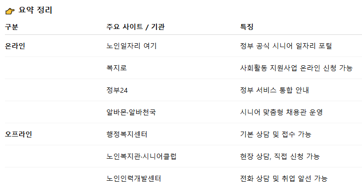 → 시니어클럽, 복지관 등은 모집 공고가 자주 올라옵니다.