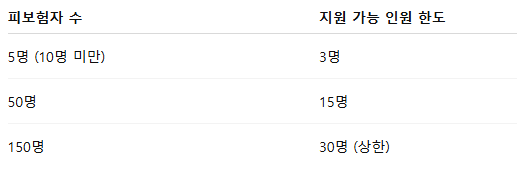 고용촉진장려금 지원 인원 한도 예시
