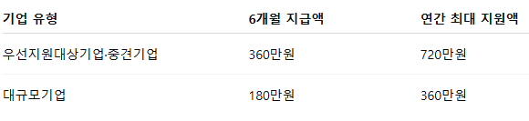 지원금액: 최대 720만 원 (대기업 360만 원)
