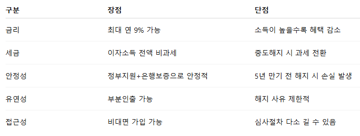 다만 혜택을 모두 누리기 위해서는 5년간 꾸준히 유지해야 하며, 중도해지 시 불이익이 있다는 점을 반드시 기억해야 합니다.