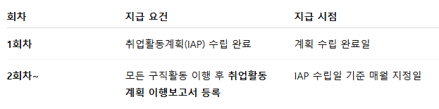 대상자가 개인별 취업활동계획을 수립하고, 해당 계획에 따라 프로그램을 이행한 경우 그 활동을 지원하기 위한 비용으로 지급됩니다.