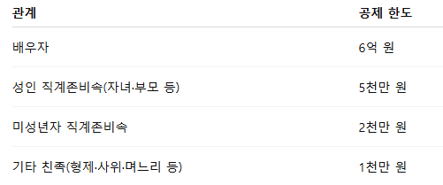 배우자는 6억원까지, 성인 직계존비속 (자녀와 부모 등)은 5천만원까지 등 자세한 2025년 기준 공제 한도를 살펴보겠습니다.