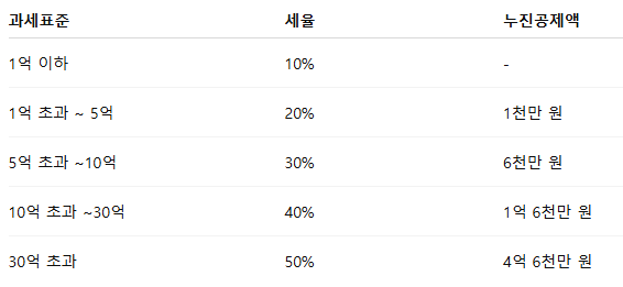 증여세는 누진세 구조로, 금액이 커질수록 더 높은 세율이 적용됩니다.