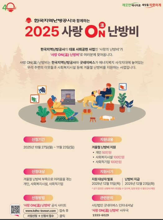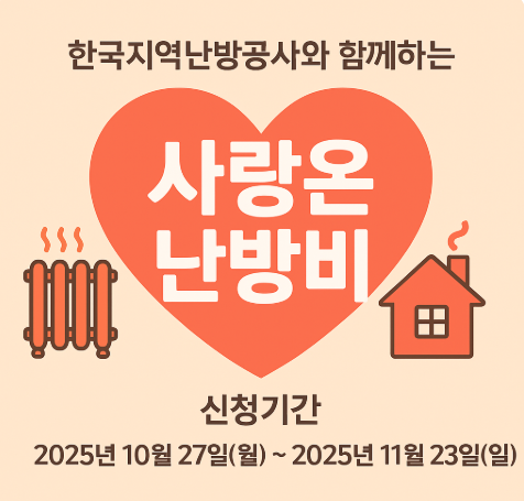 2025년 사랑온난방비 사업은 10월 27일(월)부터 11월 23일(일) 24시까지 신청을 받습니다.