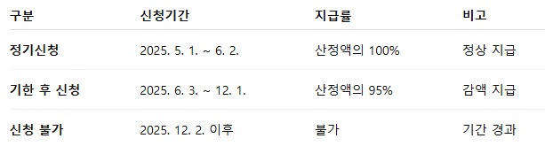 2025년 6월 3일부터 12월 1일까지는 ‘기한 후 신청’만 가능합니다.