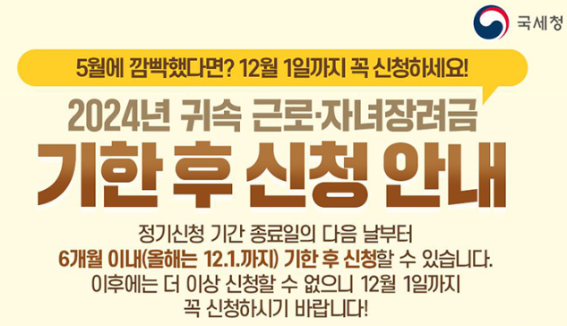 근로자녀장려금 신청기간 (기한 후 신청은 12/1까지!)