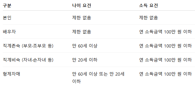 단, 부양가족으로 인정받기 위해서는 소득 요건과 나이 요건을 모두 충족해야 합니다.