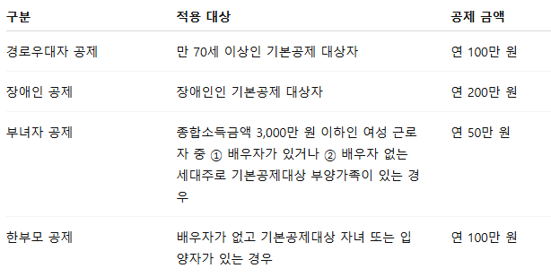 기본공제 대상자 중 특정 요건을 충족하는 경우에는 추가공제를 받을 수 있습니다.